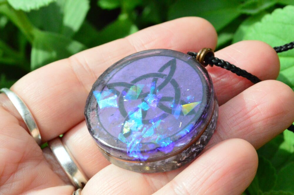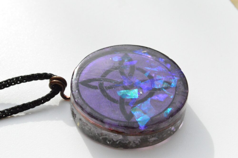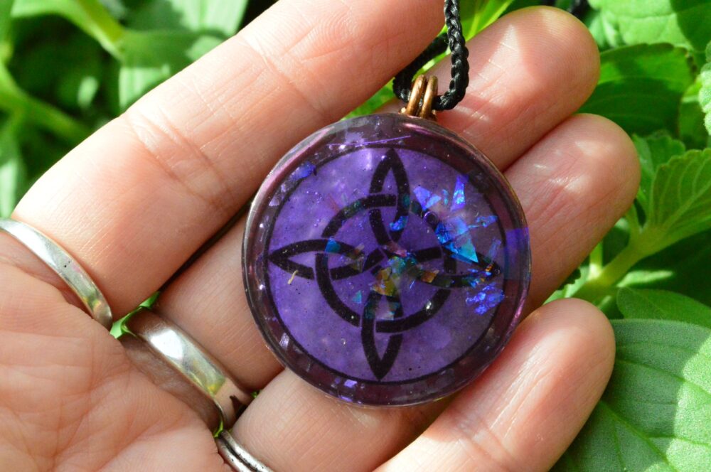 Este poderoso dije de orgonita está inspirado en el antiguo Nudo de Bruja, un símbolo de poder, protección y conexión con las fuerzas invisibles de la naturaleza. Tradicionalmente utilizado en rituales de resguardo y sabiduría femenina, actúa como talismán contra energías negativas y canalizador de la intuición creativa.